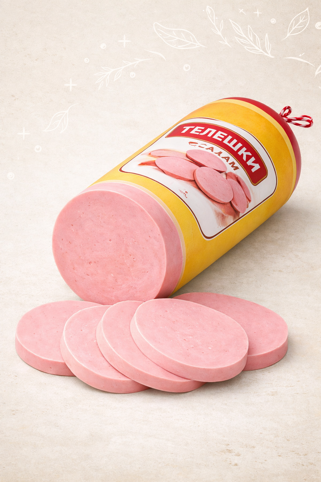 Съставки: телешко месо 100%, вода, сол, подправки, (стабилизатори: трифосфати; антиоксидант: натриев ериторбат; консервант: натриев нитрит – общо до 0,006%).