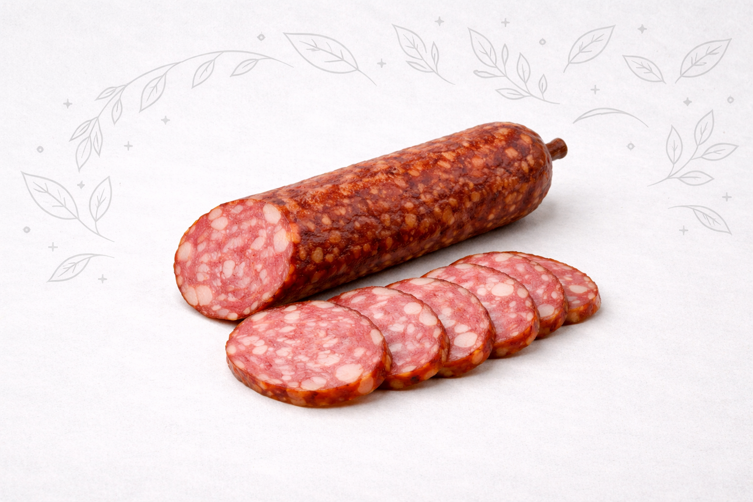 Съставки: свинско месо, говеждо месо, сланина, сол, млечни протеини – до 0,005%, екстракти от подправки, (стабилизатор: трифосфати; антиоксидант: изоаскорбинова киселина; консервант: натриев нитрит; оцветител: кармин – общо до 0,002%).